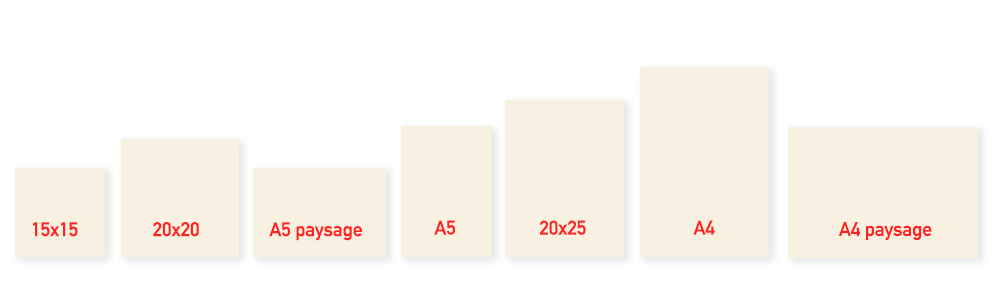 Les Livres photo dos collé sont disponibles dans 7 formats :